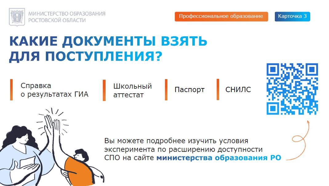 СПРАВОЧНО: Пилотный проект по расширению доступности среднего профессионального образования (СПО) в Российской Федерации стартовал в 2025 году. Он предусматривает упрощение процедуры поступления в образовательные организации СПО. Девятиклассникам достаточно пройти государственную итоговую аттестацию по образовательным программам основного общего образования только по двум обязательным предметам (русский язык и математика) вместо традиционных четырех экзаменов.