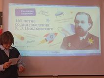 В школе оформлен стед к 165-летию со дня рождения выдающегося учёного и изобретателя в области аэродинамики - Циоковского Константина Эдуардовича. Этой знаменательной дате был посвящен разговор о главном.