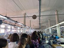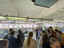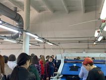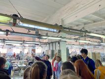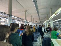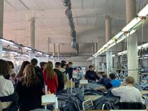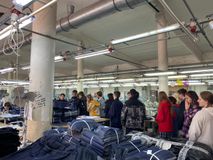 11 апреля, мы, ученики 9 классов, ходили на экскурсию в Глорию Джинс, где шьют вещи, которые в дальнейшем продают в магазинах по всей Ростовской области. Первое на что я обратила внимание-это то, что там работает очень много людей. Нам показали, как происходит пошив одежды, а именно джинсовых платьев. На производстве запущенно несколько линий, каждой из которых каждая швея выполняет определенную строчку или обработку отдельной детали. Весь пошив платья проходит по определенному циклу. Далее готовые изделия отпаривают на профессиональной компьютеризованной машине. Затем вещи попадают на склад, где на готовые джинсовые платья крепят этикетки, а так же происходит упаковка готовой продукции в коробки.