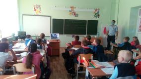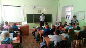 Денис Сергеевич рассказал о правильном и безопасном поведении на проезжей части, о правилах езды на велосипеде. Объяснил учащимся начальных классов, почему детям до 14 лет не разрешается выезжать на велосипедах на проезжую часть. Кроме того, учащиеся вспомнили, как они должны переходить дорогу с велосипедом, а так же необходимое ношение светоотражающих элементов на одежде пешехода и велосипедиста, просмотрев мультфильм «Детям о ПДД». Инспектор полиции напомнил, что необходимо неукоснительно соблюдать правила дорожного движения и не поддаваться отрицательному влиянию.